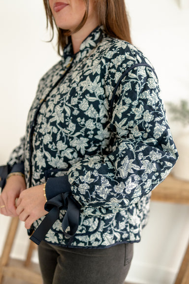 Add a touch of charm and coziness to your layers with the Jules Quilted Jacket. Featuring an allover floral quilted design and sweet ribbon detail...