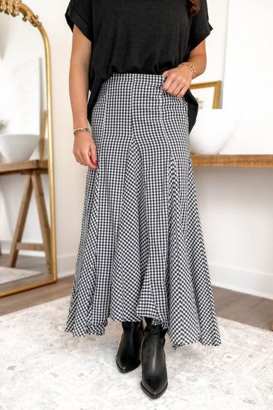 View full detailsAdd playful movement and charm to your look with the Alexa Checkered Skirt. Designed with a flattering banded waistline and flounce hem, this skir...