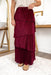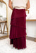 Flirty and feminine, the Sangria Skirt elevates any outfit with its layered ruffle design and high-waisted fit. Designed to move with you, its pleated tiers add volume while the concealed side zipper ensures a sleek finish. Pair it with a fitted top or cozy knit for an effortlessly styled look.