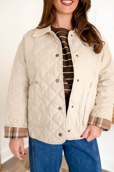 Cozy meets chic in the Jenna Quilted Jacket, featuring beautiful embroidery, contrast trim, and functional details that make it a fall layering fa...