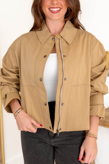 A modern take on the classic trench, the Jovi Trench Jacket offers a relaxed silhouette with utility-inspired details. Featuring a snap button and ...