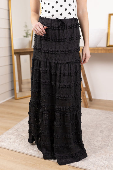 Tiered lace maxi skirt Elastic waist with tie Lined