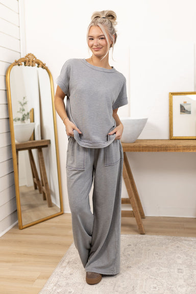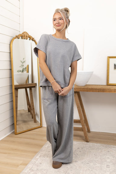Top + pants sold together Washed slub knit fabric