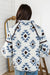 Crafted from plush sherpa fleece, this pullover jacket showcases a striking geometric print that elevates any casual ensemble.