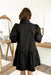 A soft statement for seasons of bloom. The Blossom Dress features delicate floral embroidery across a flowy silhouette, with a ruffled band collar and V-neckline adding charm to the look.